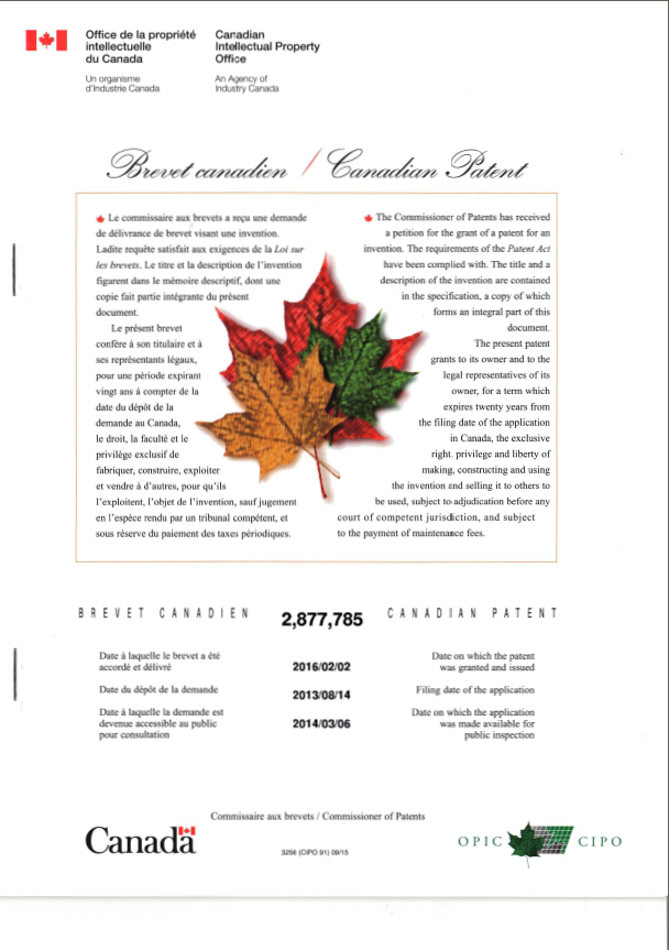 实德聚酯合金技术发明专利《自增强型塑料异型材及其生产方法》,获得了加拿大专利局授予的第2877785号《发明专利证》。