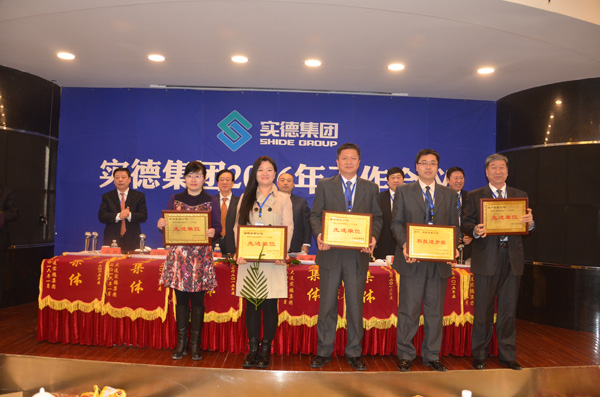 会议第四部分是集团领导讲话。首先由常务副总裁隋信敏带领大家回顾了实德集团24年的发展历程,从最初的土石方工程起家到如今,一路走来,引发了大家强烈的共鸣与怀念;接着杨书记对2015年工作进行了回顾,总结了成绩与亮点,同时指出还存在不可忽视的严峻问题。杨书记对2016年工作进行了安排与部署,指出下一步我们要认清大形势、增强大信心、迎接大考验、研究大问题、做好小事情、完成硬任务、寻求大突破、奔向大目标;会议最后徐斌董事长对大家2015年的工作给与给予了肯定,尤其是先进单位和优秀个人表现突出,值得大家学习。徐总指出2016年是充满机遇的一年,大家要端正思想,把本职工作当做自己的工作来做,相信通过大家共同的努力,一定能将工作做好!